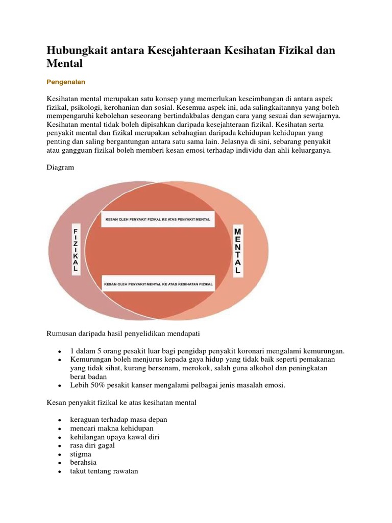 Hubungkait Antara Kesejahteraan Kesihatan Fizikal Dan Mental